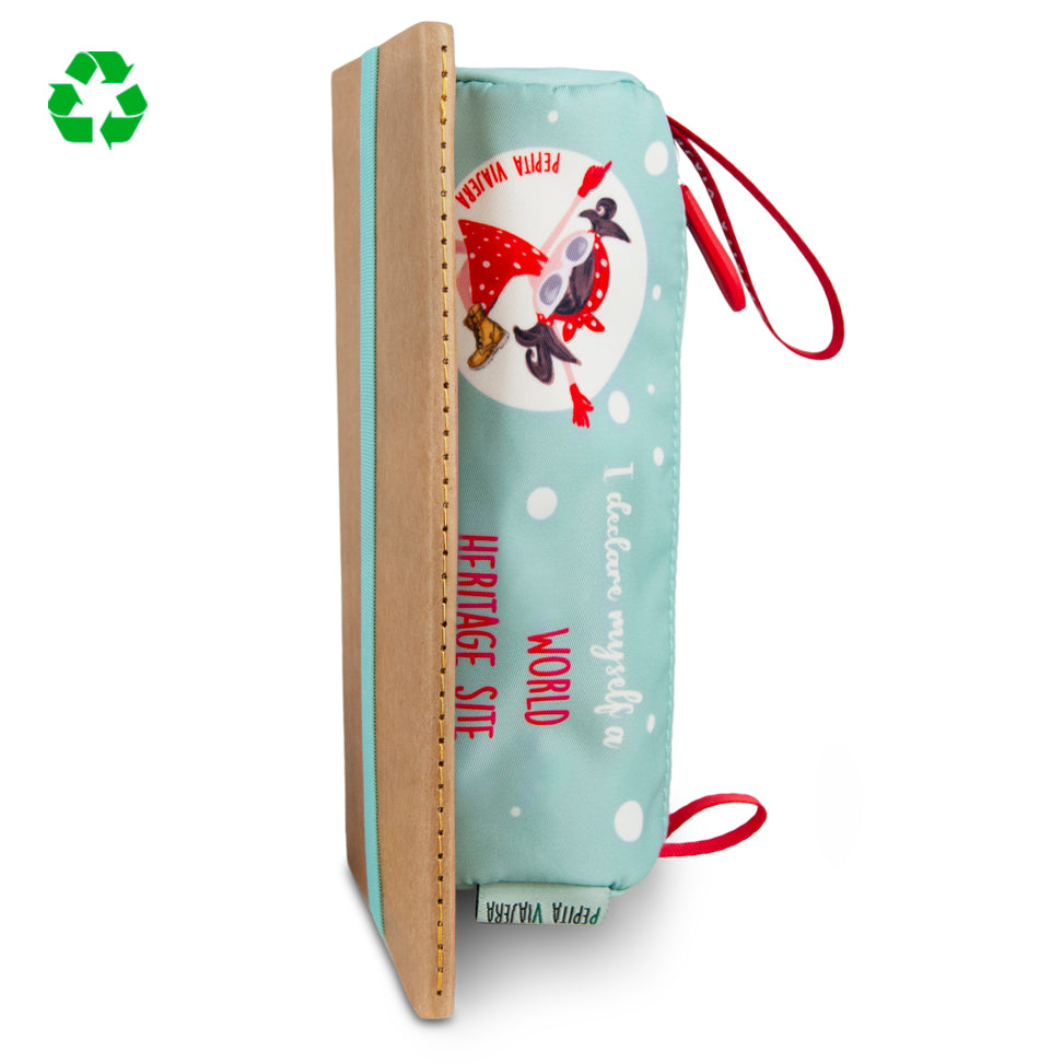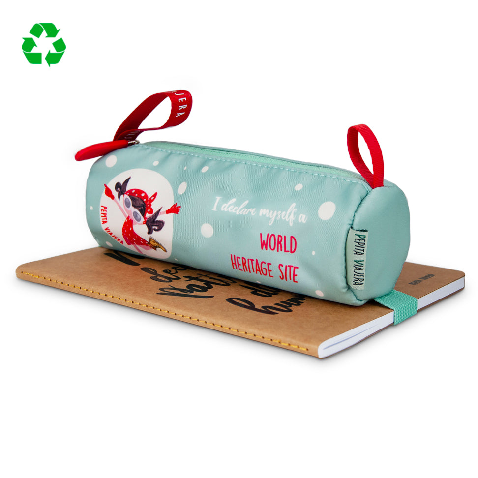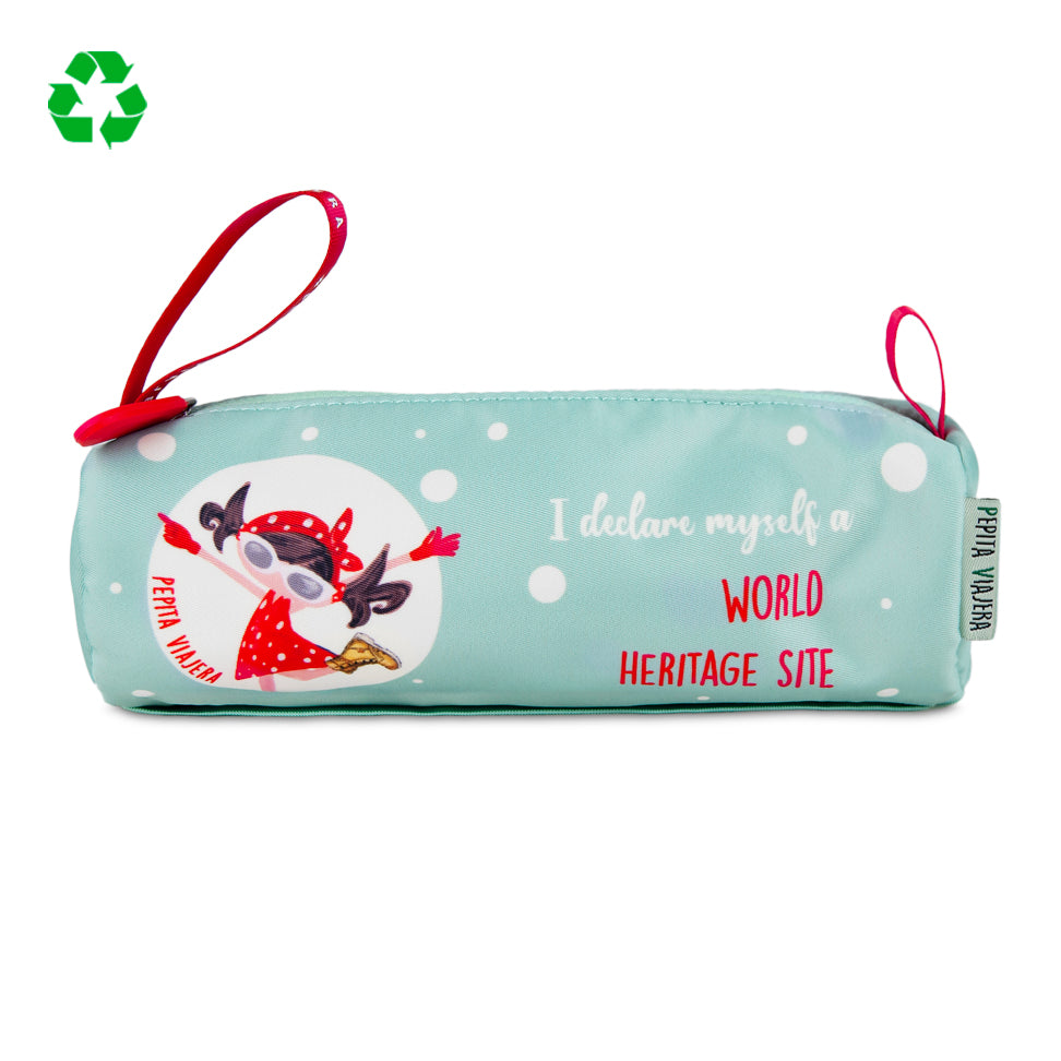 Como todos los productos de Pepita Viajera, este portatodo está fabricado en RPET (poliéster reciclado), ayudando a reducir residuos y cuidar del planeta. Porque ser patrimonio también significa dejar un legado responsable.