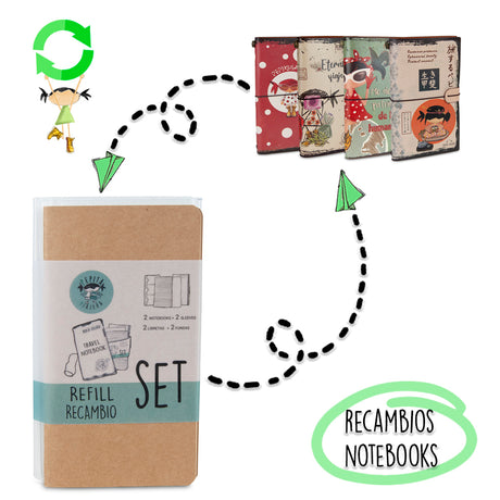 €1695Precio unitario /AgotadoRecambio libretas y tarjeteros para cuadernos de viaje