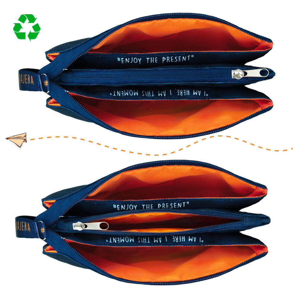 Con tres compartimentos diferenciados, este portatodo (13 x 22,5 x 5 cm) es perfecto para organizar material de papelería, cosmética o accesorios. Fabricado con RPET reciclado y con solo 112 g de peso, es un aliado funcional y sostenible para quienes valoran el orden y el diseño.
