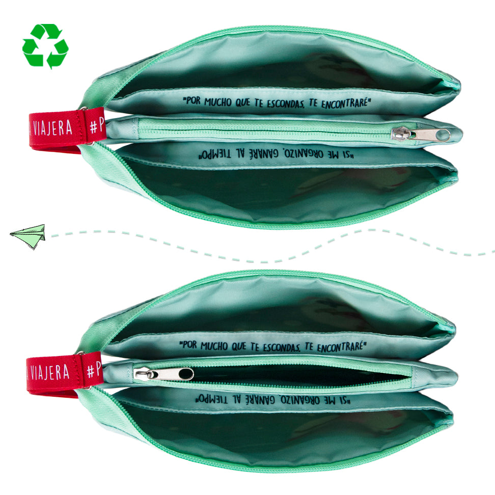 Este práctico portatodo de tres compartimentos es perfecto para llevar artículos pequeños de manera organizada. Fabricado con RPET, es ligero (112 gramos) y resistente al uso diario, ideal para aquellos que buscan funcionalidad y sostenibilidad.